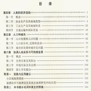 两期课改教材在知识内容上都具有很好的科学性及完整性,并且都是按照先自然地理再人文地理到区域地理的内容顺序来组织内容。例如,一期教材内容的编排顺序为“地球的宇宙环境”——“人类的经济活动”——“人口和城市”;二期教材的编排顺序为“宇宙与地球”——“人口”——“城市”、“产业区位与分布”。