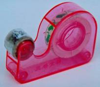 新疆奎屯市学生李如忠发现修改错字用的透明胶带被扔得到处都是,于是设想若能将使用后的废胶带集中处理、回收该多好啊!他改进了原有的透明胶带截取器,在保留原截取器胶带安放、取出、截取都很方便的基础上,增加了改字和回收两种功能。即在原截取器底部开了两个小槽,露出的胶带就能直接在改字器上对需修改处进行粘贴,此外,将原截取器所用的齿形尺去掉,在这装一个转动的带轮,用于回收废胶带。