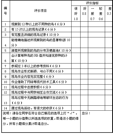 观鸟活动评价量表