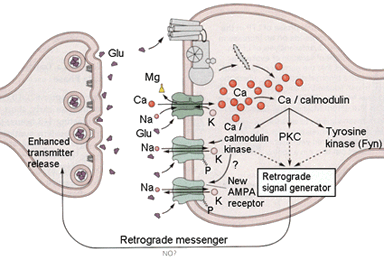 钙调蛋白依赖性蛋白激酶,还可以诱导突触后神经元,使细胞质内已经合成的AMPA受体嵌入到突触后膜上,突触后膜上的受体增多后,神经递质释放引起的突触后电位就会增大。