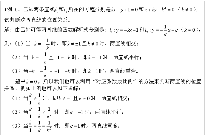 3、两直线的位置关系是高中解析几何的基本内容,设置本题的目的在于让学生感受函数、方程、图形之间的关系,为高中学习两条直线的位置关系作好铺垫,为用向量体系研究两条直线的位置关系做好准备。